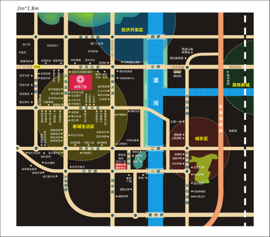 興悟北路與迎賓大道交匯處(金色華府國(guó)際酒店旁),四周都是城市主干道,北為京珠連接線,南為前進(jìn)大道,東為發(fā)展大道,西面毗臨興悟北路,周邊幾條路都是雙向四車道或雙向八車道,非常寬敞,而老城區(qū)的兩車道就不能比了。而在公共交通方面,項(xiàng)目東面車行7分鐘處,就是孝感北高鐵站,車行3分鐘處,就是京港澳高速入口和客運(yùn)站。交通路網(wǎng)四通八達(dá),無論是去市區(qū)還是南下北上,地理位置都十分優(yōu)越。