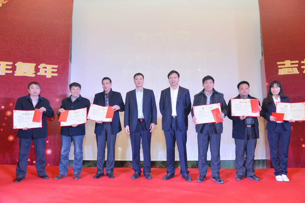 董事長(中)為2016年度優(yōu)秀項(xiàng)目經(jīng)理頒獎(jiǎng)